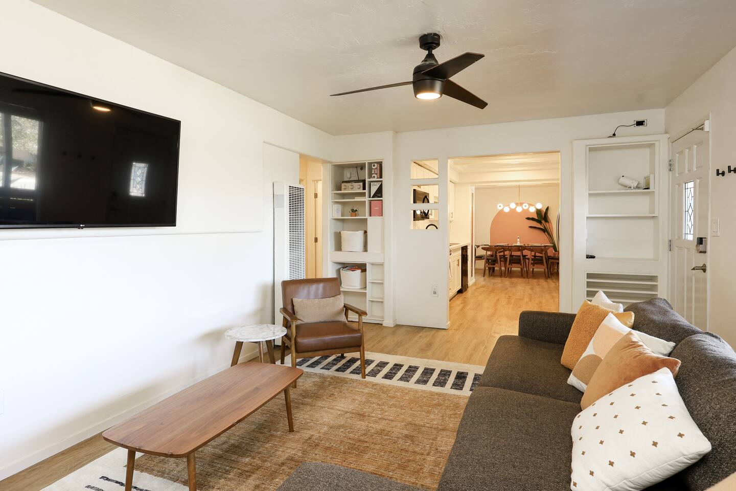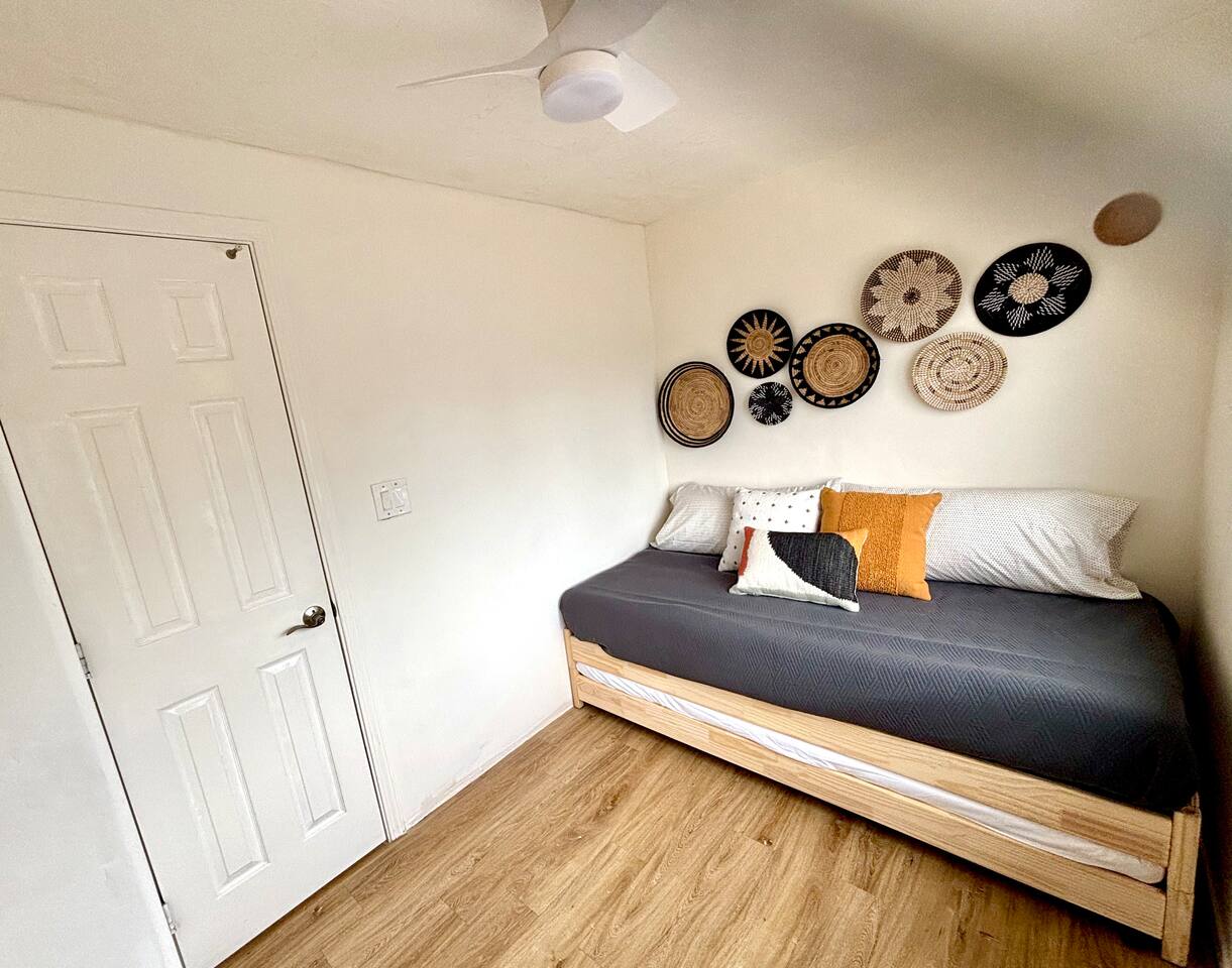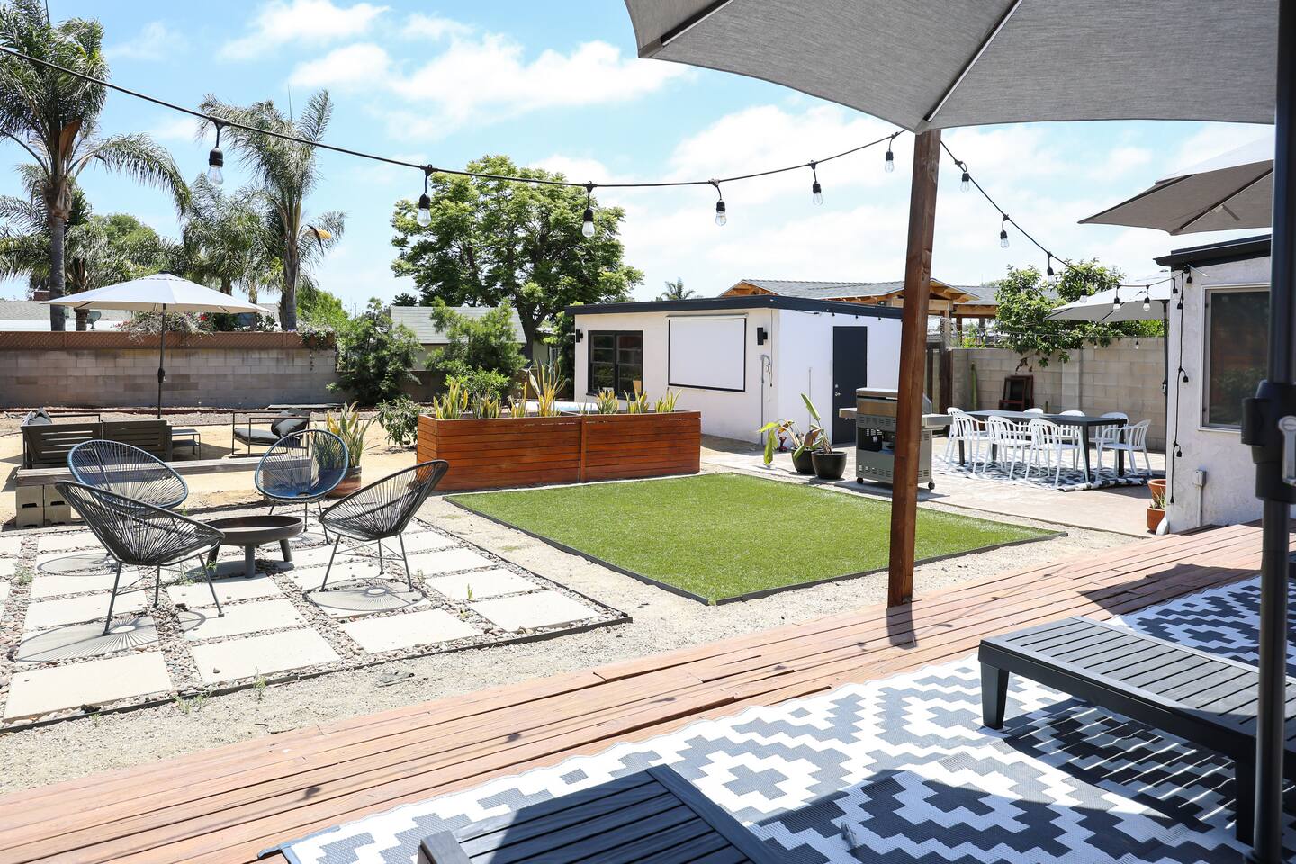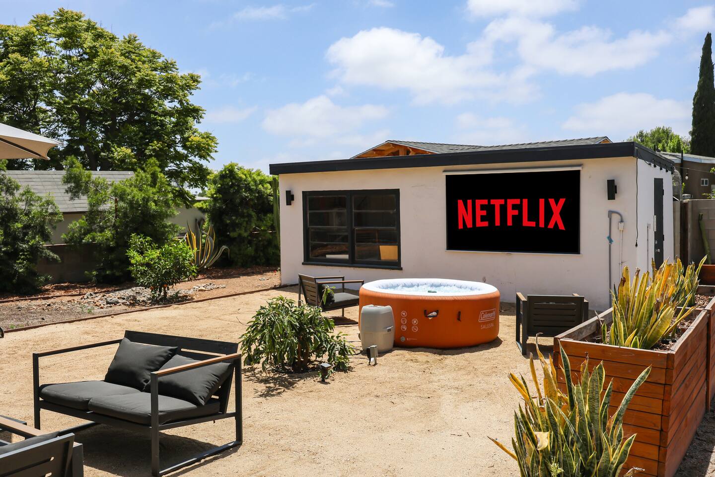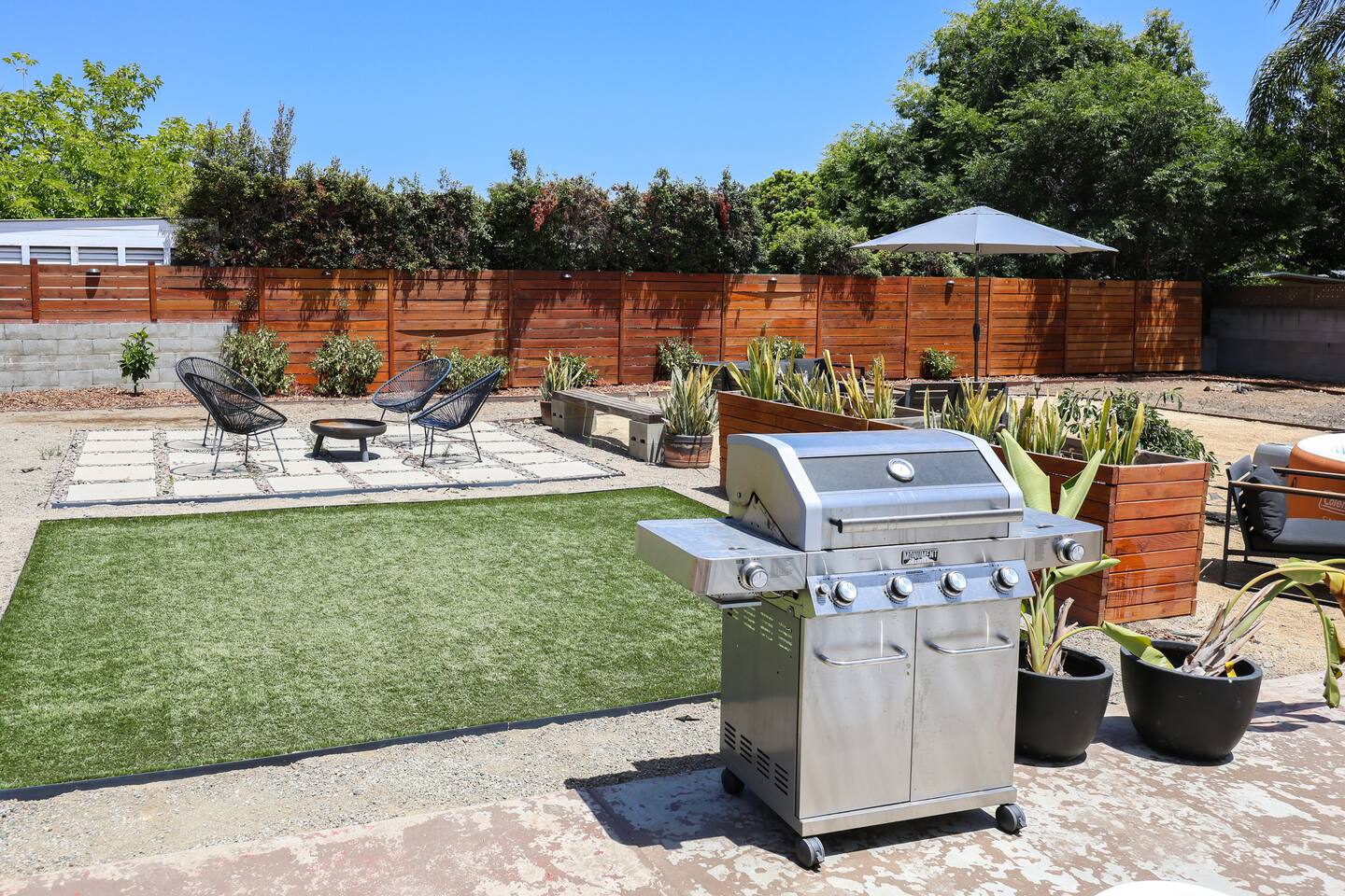 Please enjoy the new remodel with brand new luxury bathrooms including a low-profile tub perfect for bathtime routines and nightly soaks, new smart appliances including a Samsung refrigerator, high-capacity LG washer and dryer, and new drought resistant backyard landscaping to accommodate our new outdoor spa and movie watching experience. From a 65" Smart Tv to our outdoor spa, we strive to deliver an overall great experience and environment for the whole crew. The home also comes fully equipped with Netflix, HBO, Hulu, Apple TV, Paramount+ already preloaded to go, a fully enclosed private backyard for your fur babies to romp around in, four distinct outdoor seating sections with BBQ and charcoal grills, and multiple coffee modalities so there's something for everyone. Forget anything? Target and the College Grove marketplace is just a 1 mile away along with all your favorite San Diego cult classic eateries and restaurants within fast delivery distance.