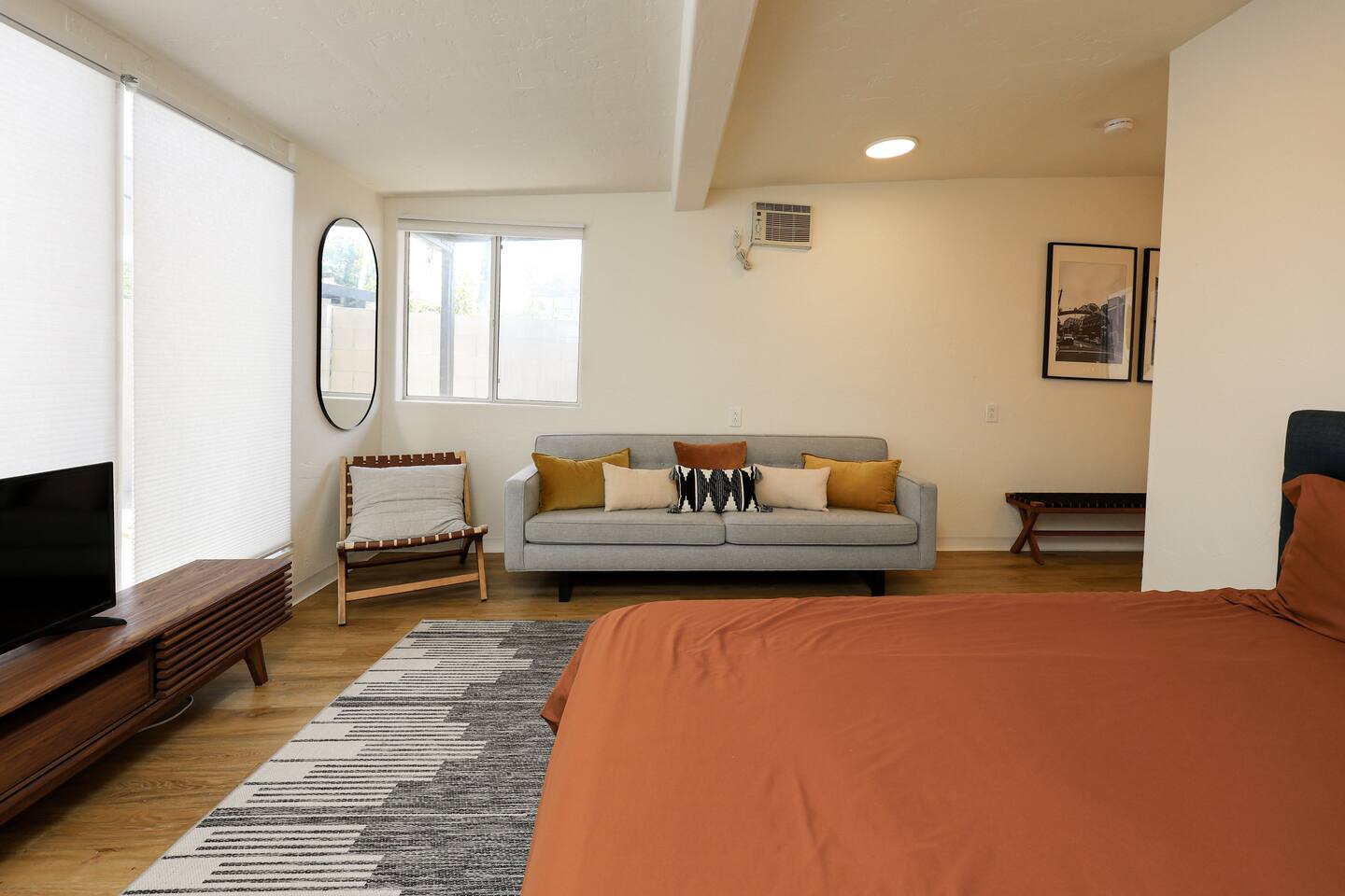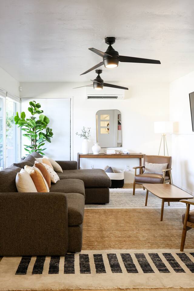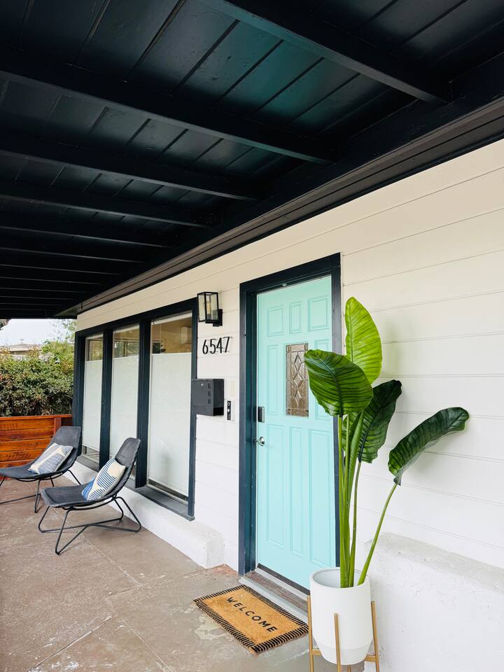 Message us for our SPECIAL OFFER! Escape to this midcentury modern, sparkling clean retreat with comfy beds, an outdoor spa, oversized backyard, firepit, and outdoor movie theater! Just minutes from the San Diego Zoo, downtown, and only 20 minutes to the beach and SeaWorld. Land softly on our Crate and Barrel sectional, our oversized Room & Board midcentury modern 89" 3- seater sofa, your private alcove work station for working remotely, and a fully stocked kitchen.