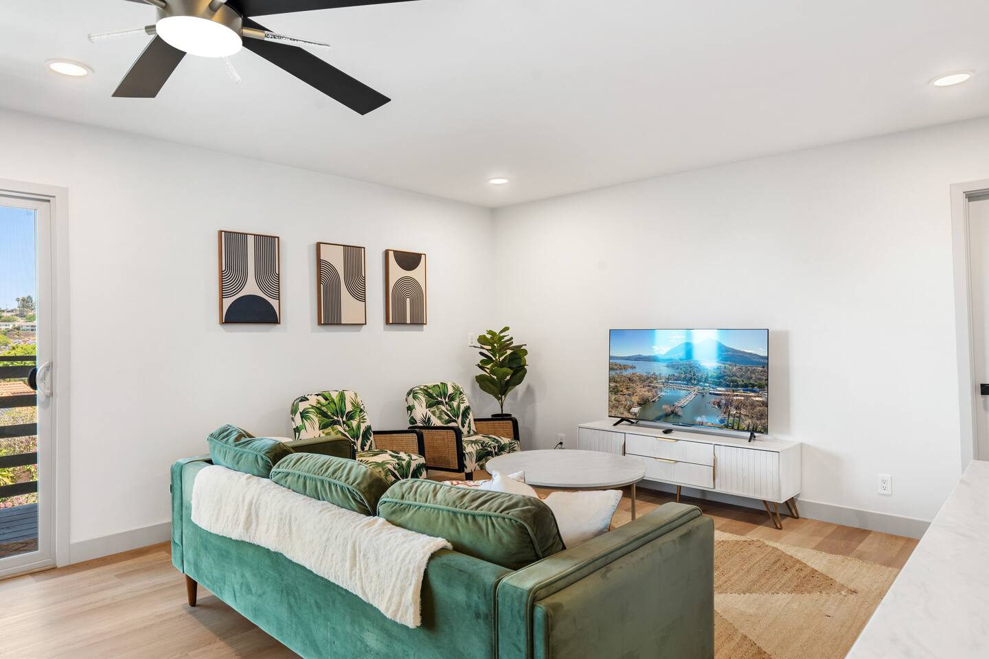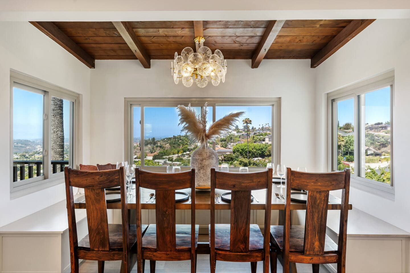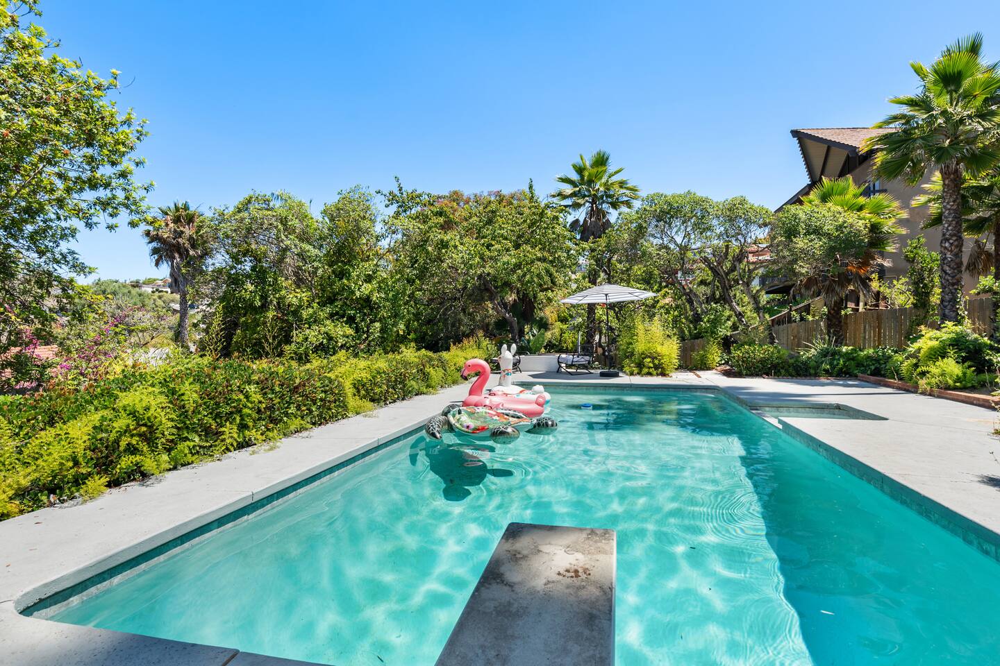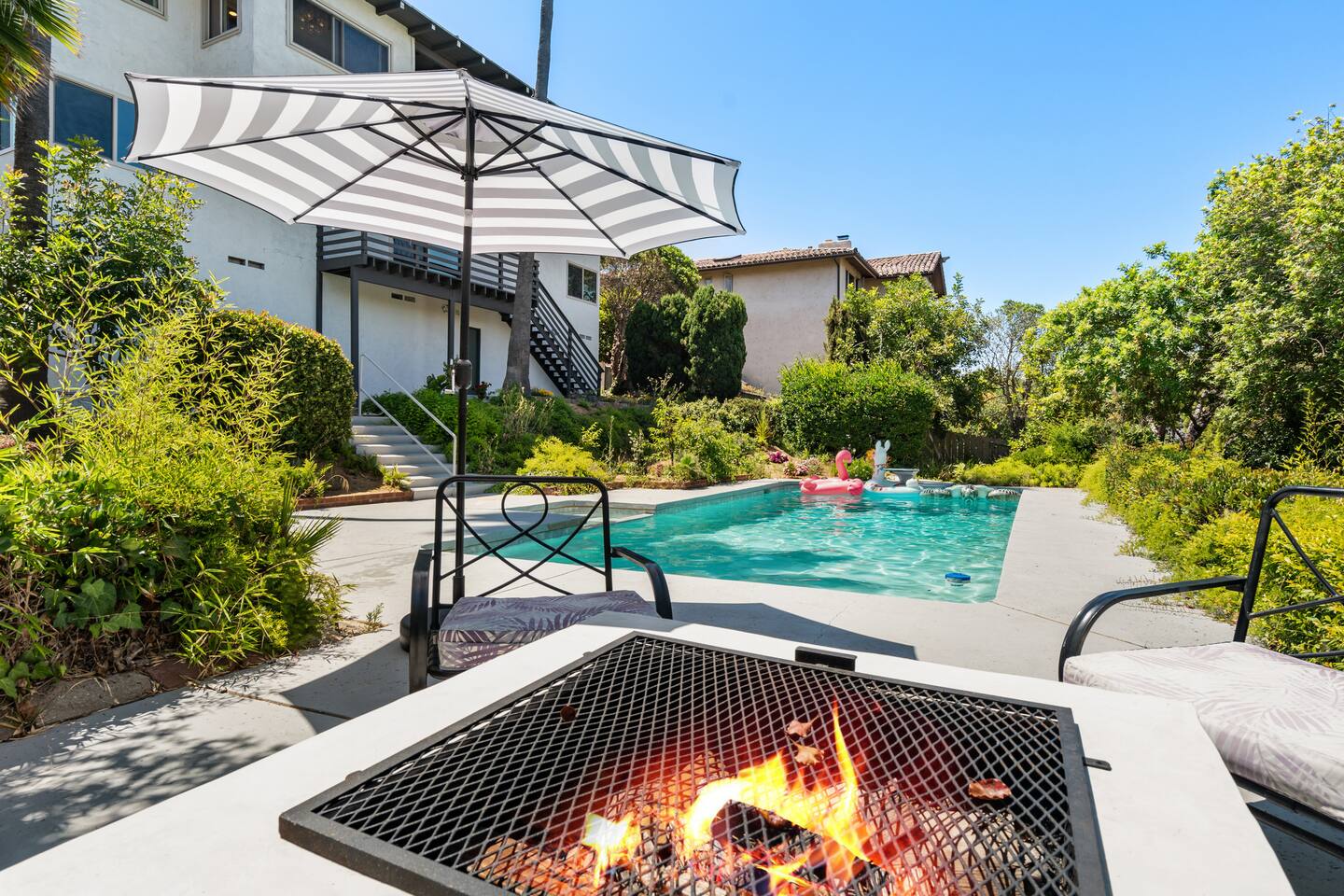 The Ultimate San Diego Luxury Retreat ' Breathtaking Views: Enjoy sweeping skyline views from multiple rooms, patios, and the backyard oasis. ' Resort-Style Outdoor Living: Lounge by the sparkling private pool, soak in the hot tub, or grill out on the patio ' Chef’s Kitchen: Cook like a pro in the fully stocked, gourmet kitchen that comes with high-end appliances ' Unbeatable Location: Whether you’re in town for work, play, or celebration, you won’t find a more impressive place to stay