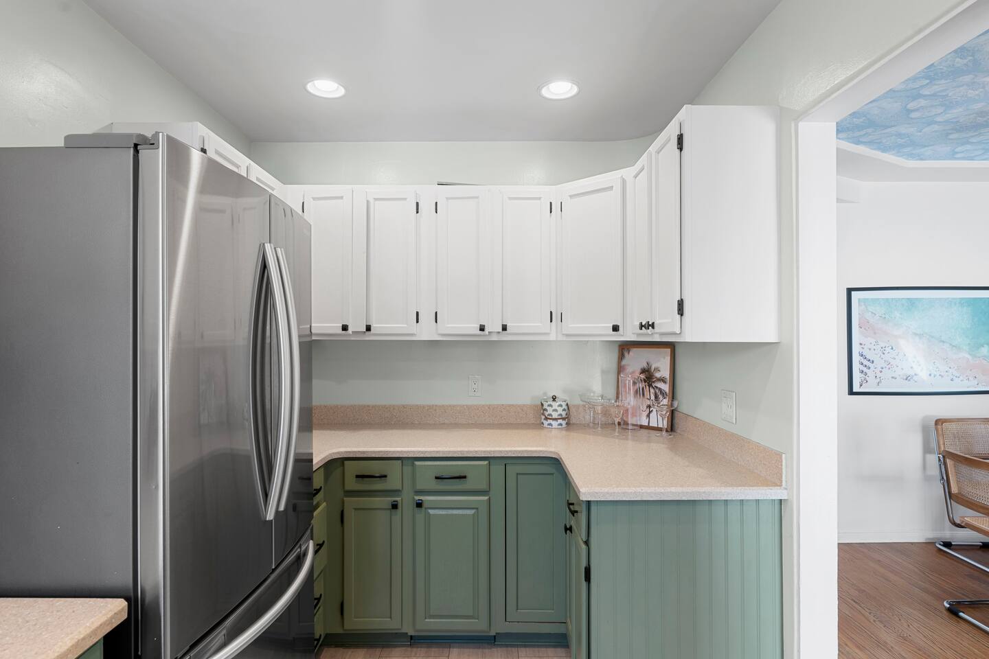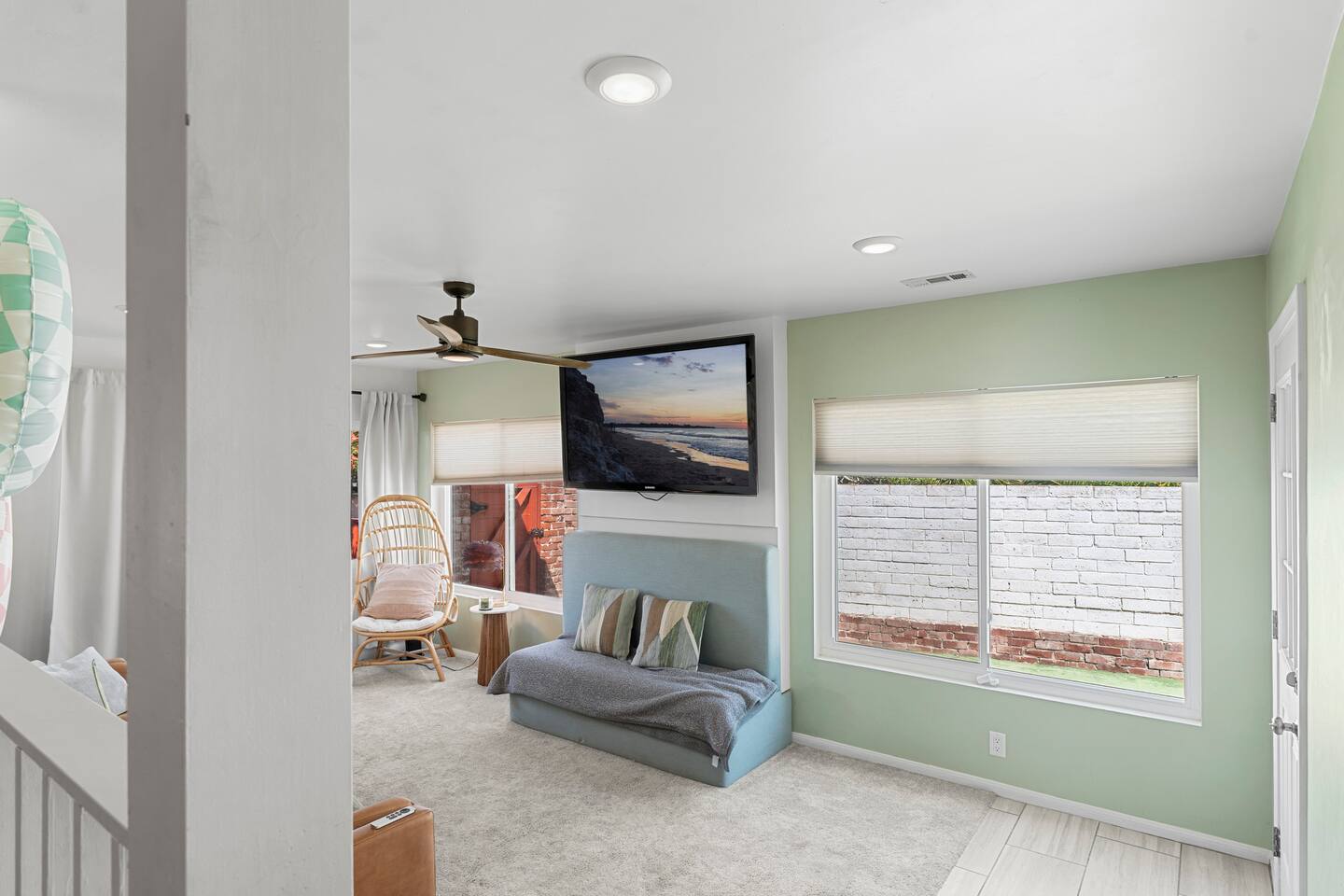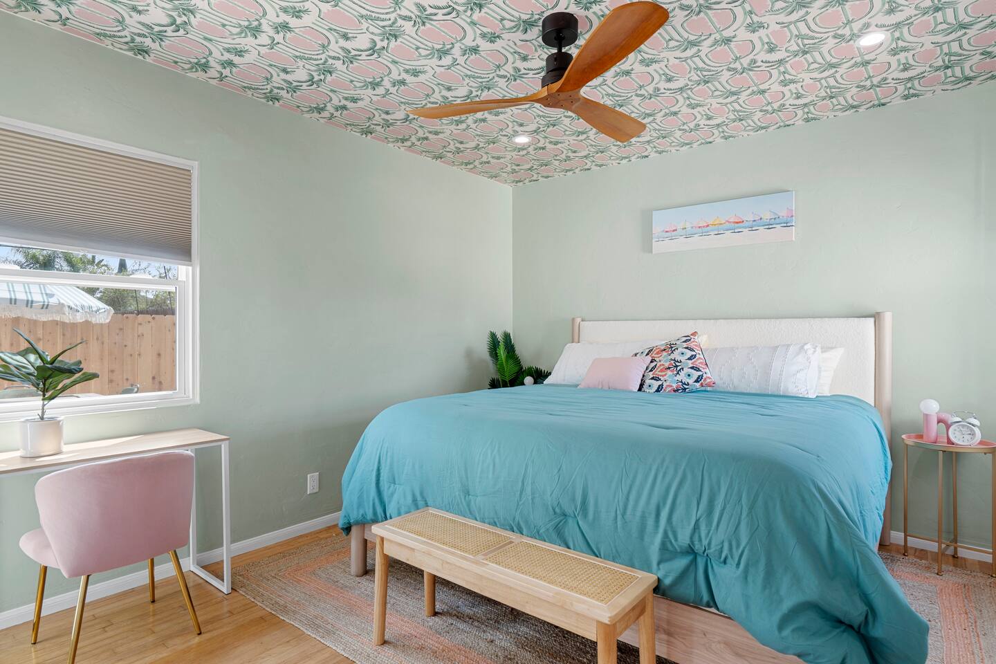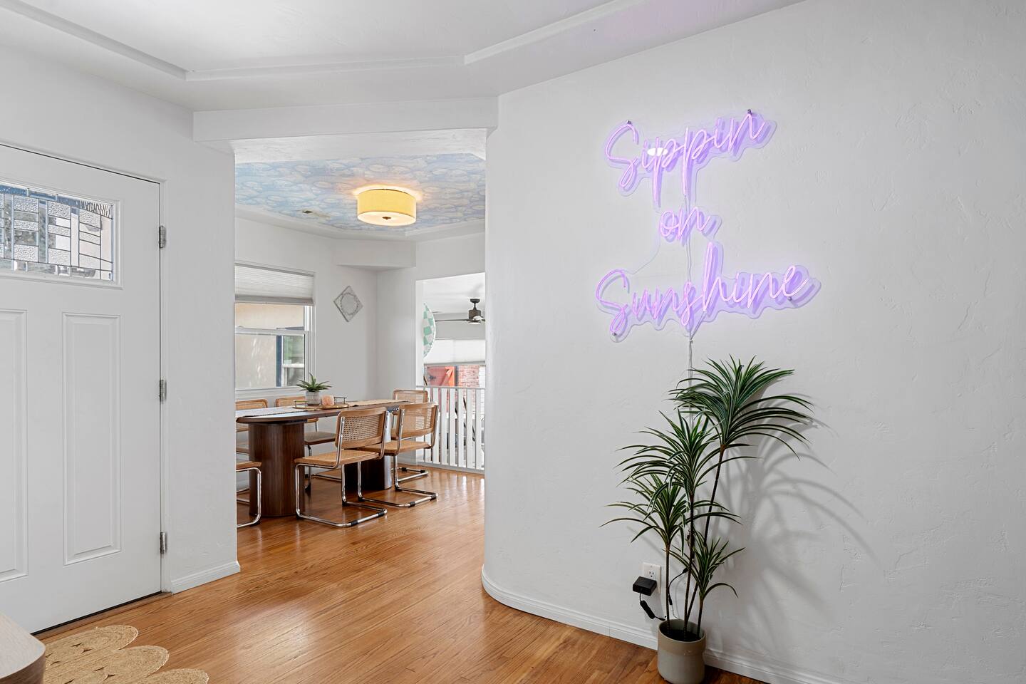 Indulge in a serene San Diego escape featuring a private spa and elegant fire pit under the stars. Nestled in a tranquil very safe neighborhood yet minutes from pristine beaches in La Jolla and Coronado, the Zoo, SeaWorld, and Marine bases. This retreat offers a spacious backyard for cornhole, ping-pong, and other entertainment. Ample parking and a chef-ready kitchen make it perfect for gatherings. Experience refined comfort and unforgettable moments with bars and restaurants within 100 yards.